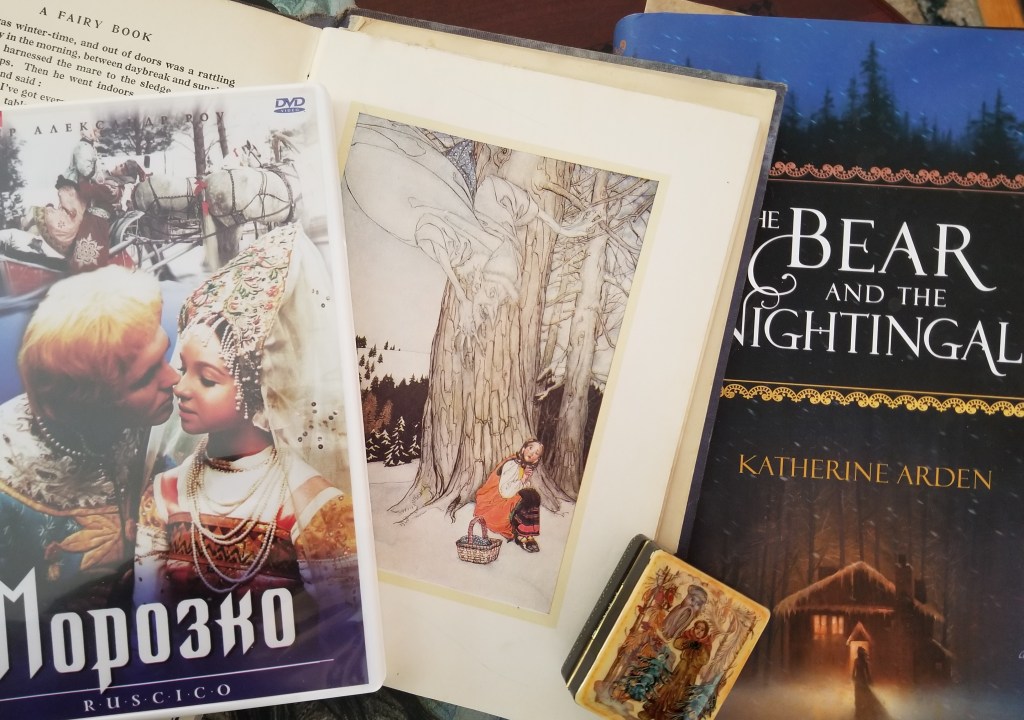 My fascination with the Frost tale has continued. My original copy of The Fairy Book was lost in a house fire when I was a teenager, but I found an old copy at a yard sale a few years ago. And I’ve collected other versions—including the “original” published by Alexander Afanasyev, the Russian counterpart of the Brothers Grimm—I’ve also acquired illustrations, and even a 1964 Russian movie, Morozko, based on the story. Most recently, I finished reading The Winter Witch, the final installment of the amazing Katherine Arden’s Winternight trilogy. I highly recommend the series and am avoiding spoilers for those who’ve added it to their reading list—suffice it to say that Frost—Morozko—is a key player in the tale.
